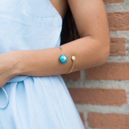 Επιλογή Αυτό το προϊόν έχει πολλαπλές παραλλαγές. Οι επιλογές μπορούν να επιλεγούν στη σελίδα του προϊόντοςBS02_X135,00 €Κομψό ασημένιο επιχρυσωμένο βραχιόλι cuff με δύο ανάγλυφους αχινούς-ο ένας με σμάλτο και επίχρυο αστερία. Αγκαλιάζει διακριτικά το χέρι και προσθέτει καλοκαιρινή, φυσική κομψότητα σε κάθε εμφάνιση. Ιδανικό για καθημερινό στυλ και καλοκαιρινό layering.